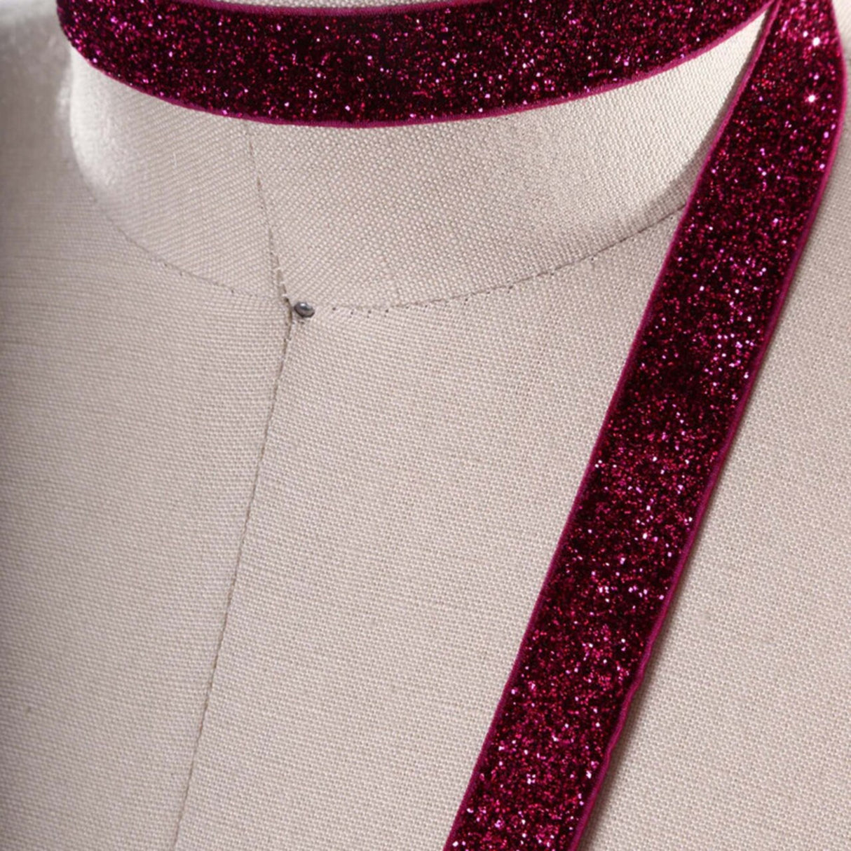 Add bold sparkle to your DIY accessories with this 2-yard magenta glitter elastic trim. At 5/8" wide, it's perfect for making headbands, hair ties, or garment embellishments. Soft and stretchy, this trim is both eye-catching and comfortable. Multiple yards will be sent as one continuous piece.