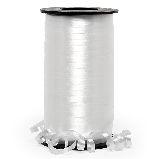 3/16" Satin Smooth Curling Ribbon in white is a versatile and high-quality polypropylene ribbon, perfect for all your crafting and gift-wrapping needs. With a 500-yard roll, it offers 42% more ribbon than typical store options, making it ideal for bulk use and long-term projects.