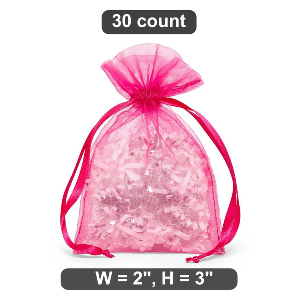 2" x 3" Organza Bag Small and Handy for Favors - Hot Pink / 30 count is backordered and will ship as soon as it is back in stock.