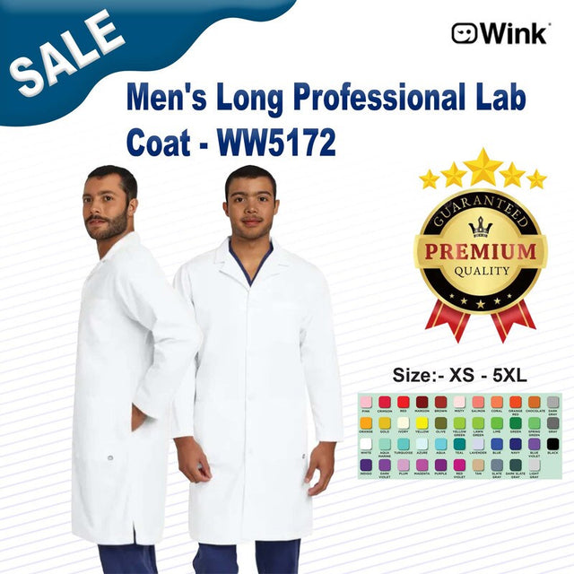 Wink® Men's Long Professional Lab Coat - White / S is backordered and will ship as soon as it is back in stock.