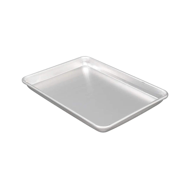 Crafted from durable 16-gauge 3000-series aluminum, this quarter-size sheet pan offers excellent strength and impact resistance for small-batch baking and roasting. Its 1-inch-high sides keep food and liquids contained, while the closed-bead rim prevents warping. The concave base flattens during baking for even heat distribution and lasting shape. Rounded corners make cleaning easy. Ideal for both commercial and home kitchen use, perfect for pastries, small portions, or compact ovens.