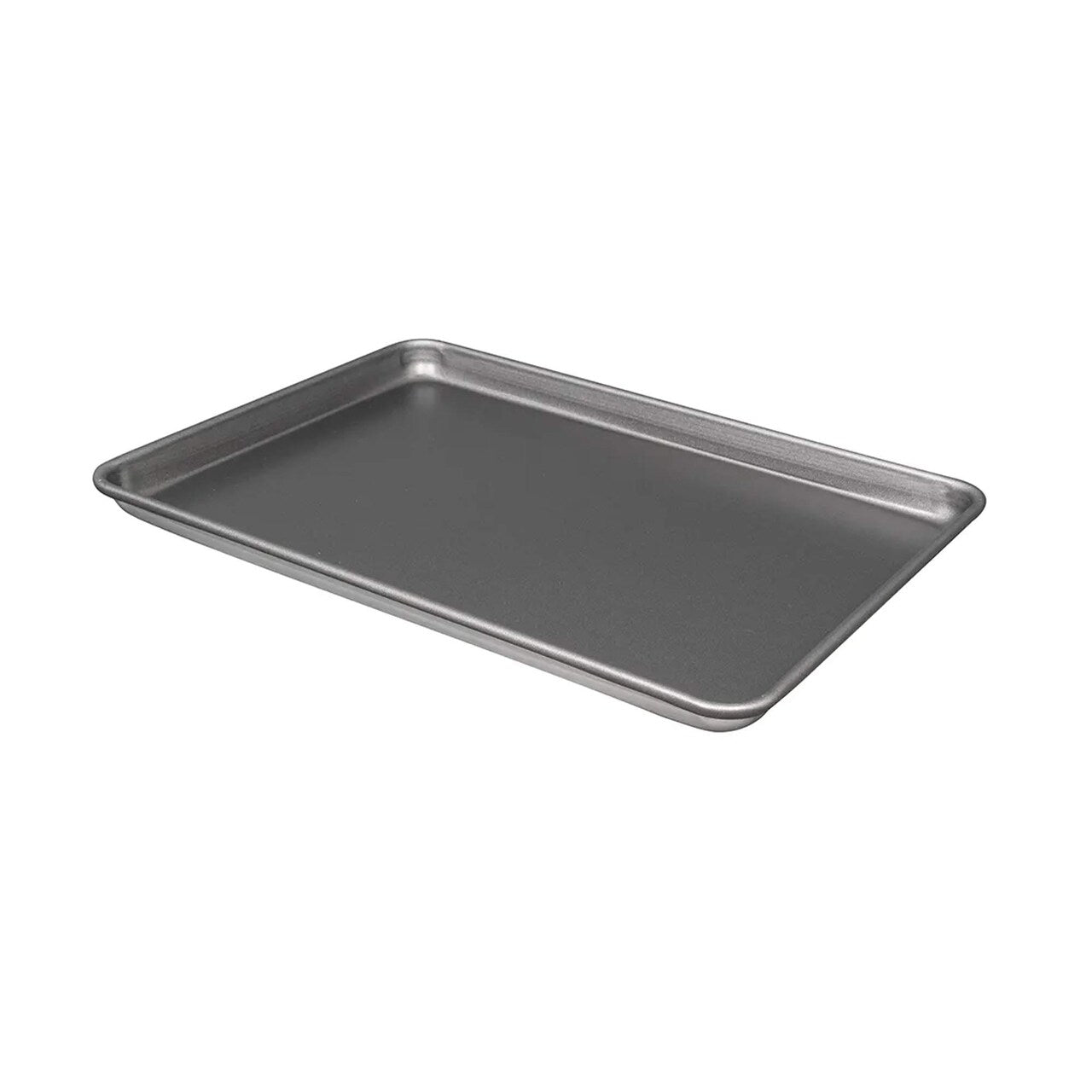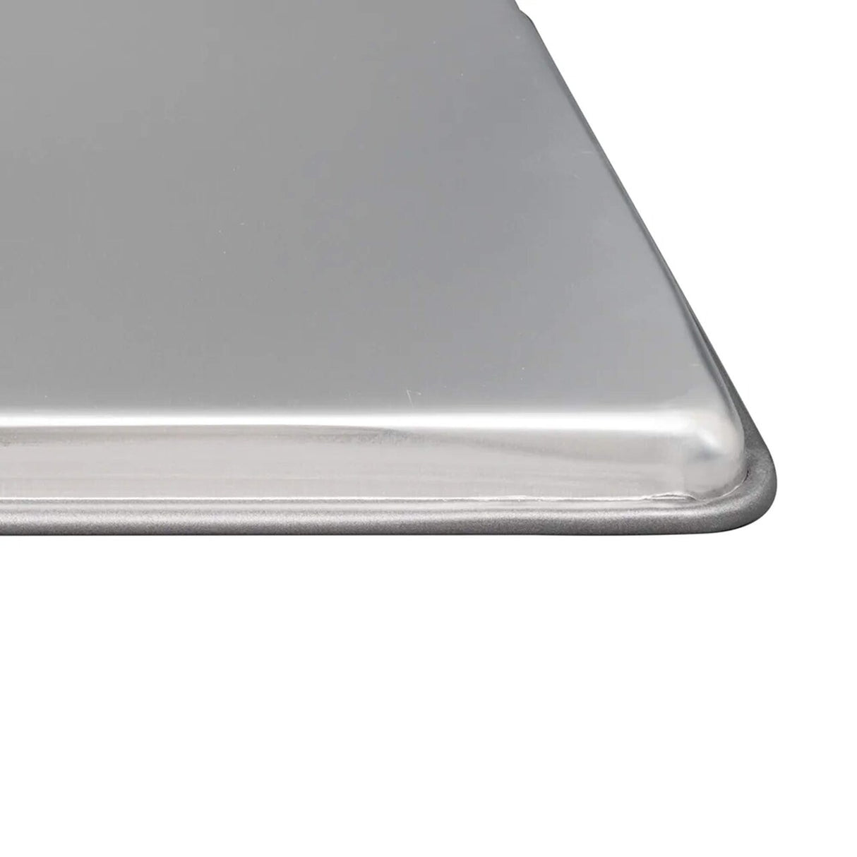 The Vollrath 5303NS Wear-Ever half-size sheet pan features an 18-gauge aluminum build and a durable non-stick coating for effortless food release. Designed with a reinforced closed bead edge and a concave bottom that flattens during baking, this stackable pan delivers even heat and lasting performance.