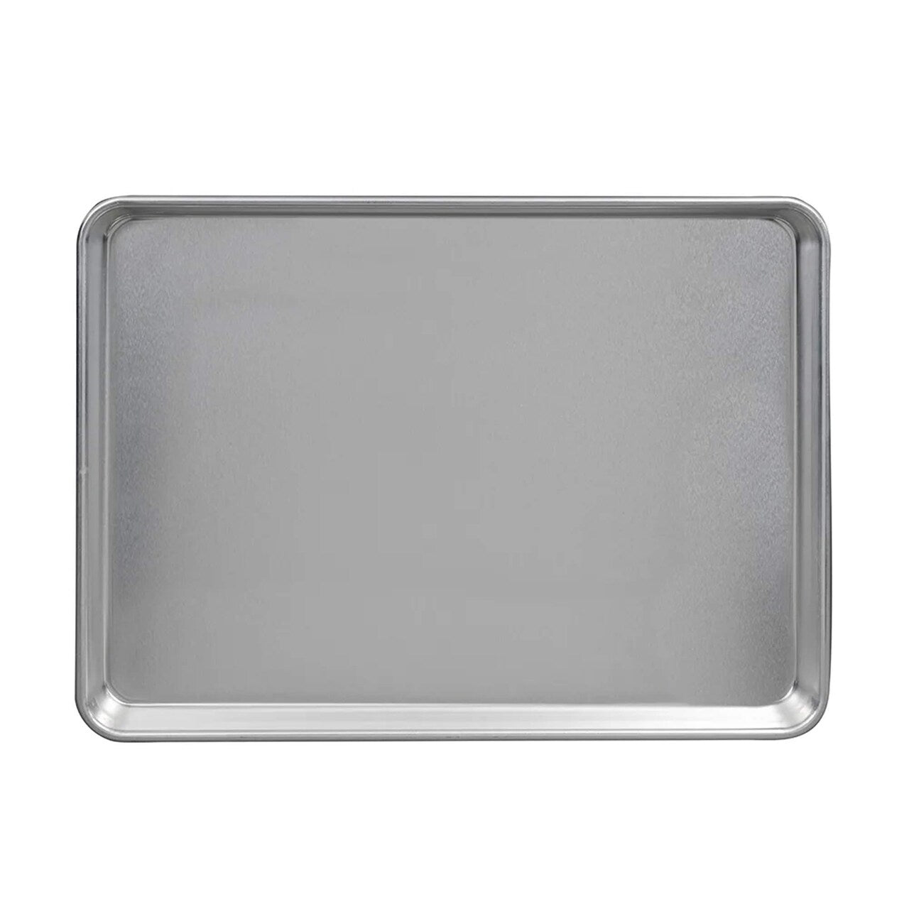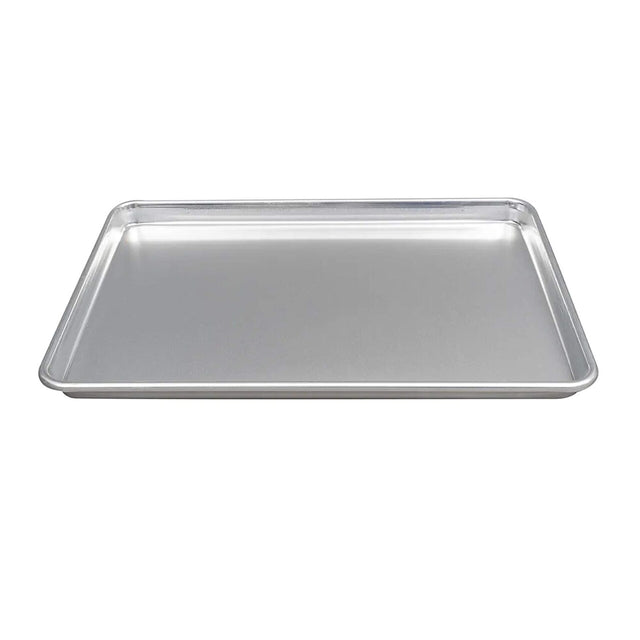 The Wear-Ever half-size sheet pan is crafted from a single piece of 18-gauge aluminum for superior heat conduction and durability. Its concave bottom flattens when heated for even baking, while a fully enclosed bead reinforces the rim to resist warping. Stackable and recyclable, this pan is ideal for commercial kitchens.