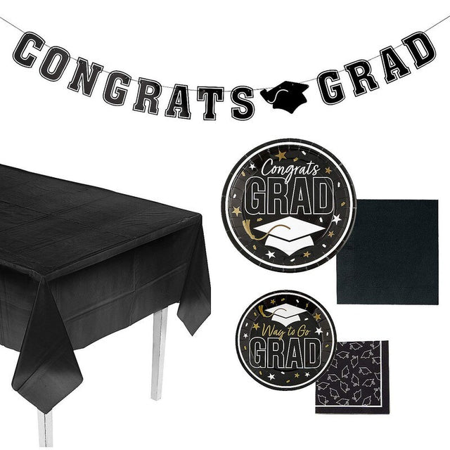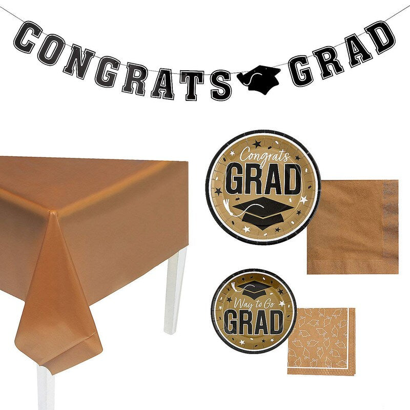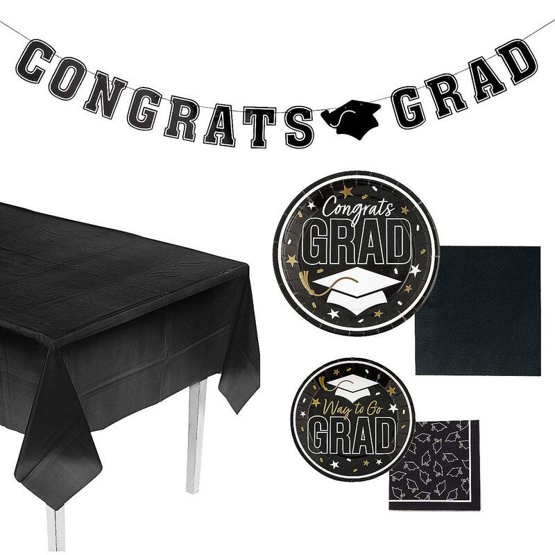 Make your graduate’s celebration stylish and stress-free with this all-in-one tableware and décor kit! Featuring vibrant school colors and matching decorations, this 152-piece set serves 25 guests and brings unity and flair to any graduation party.