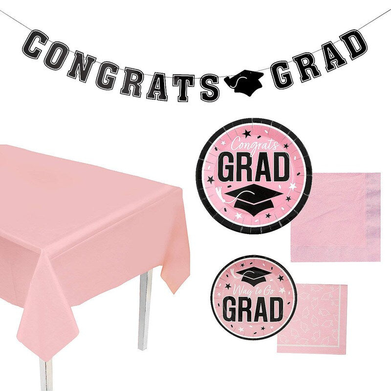 152-Piece Graduation Party Solid Color Disposable Tableware Kit for 25 Guests - Pink is backordered and will ship as soon as it is back in stock.