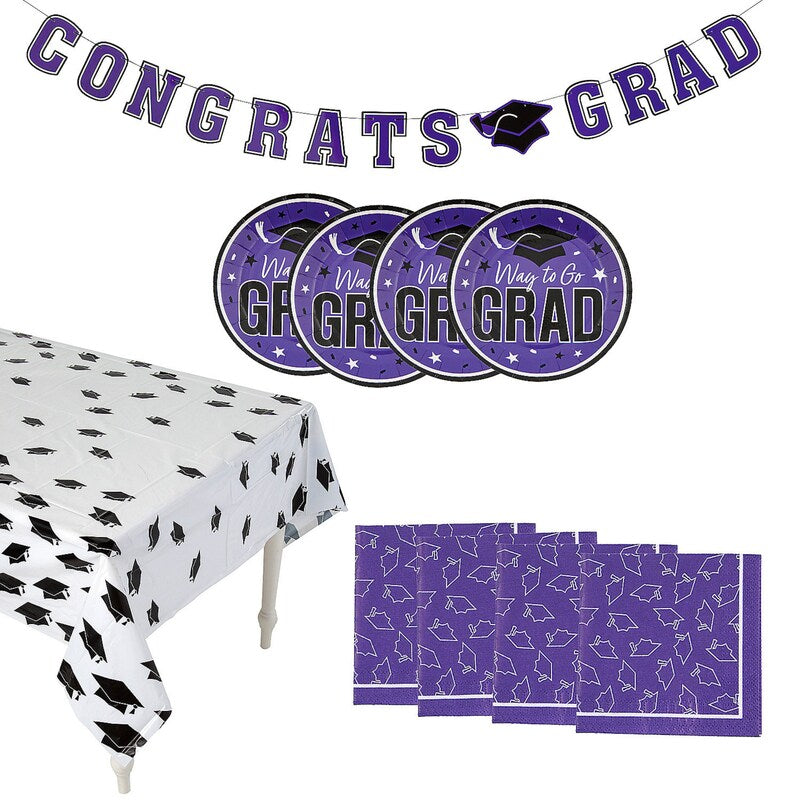Celebrate your graduate with this vibrant dessert tableware kit, designed to serve 50 guests in style! Featuring coordinated tableware and décor in a bold school color, this set adds unity and festivity to any graduation event.