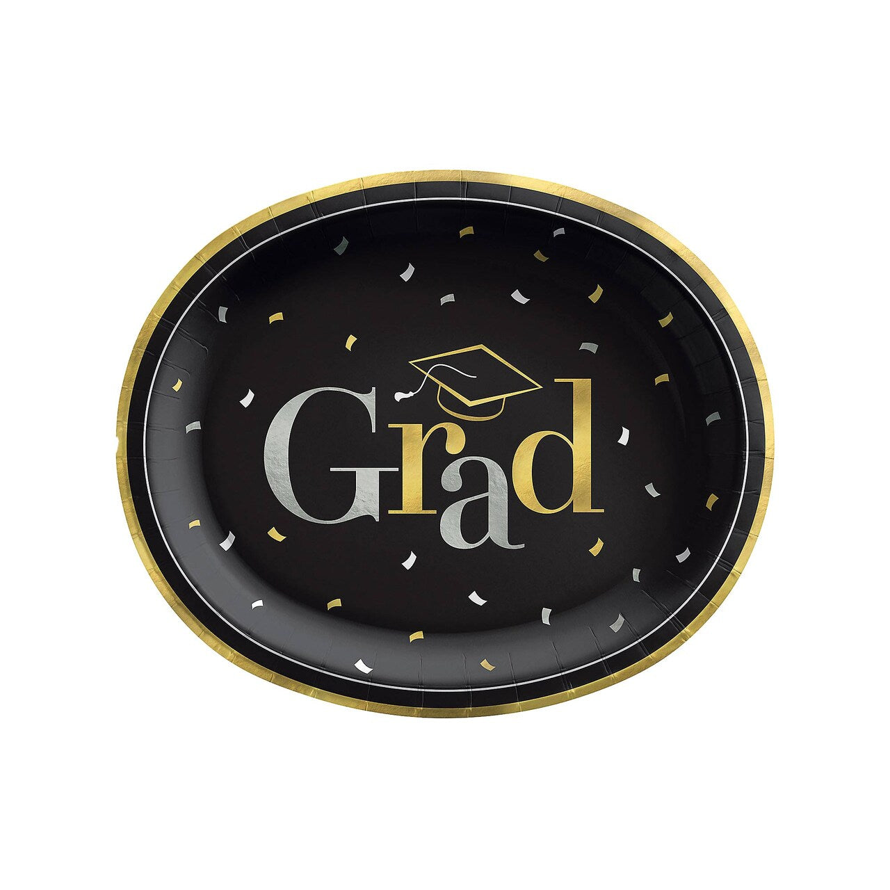 12" Black Grad Party Disposable Oval Paper Dinner Plates - 20 Ct.