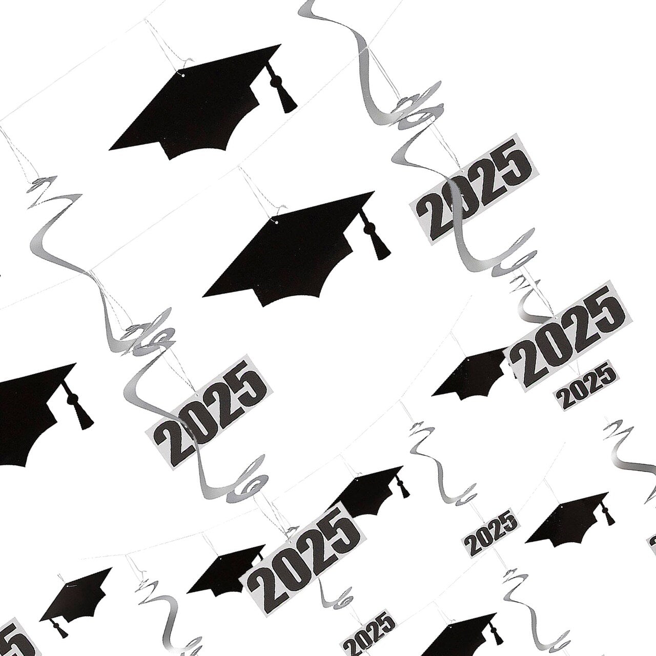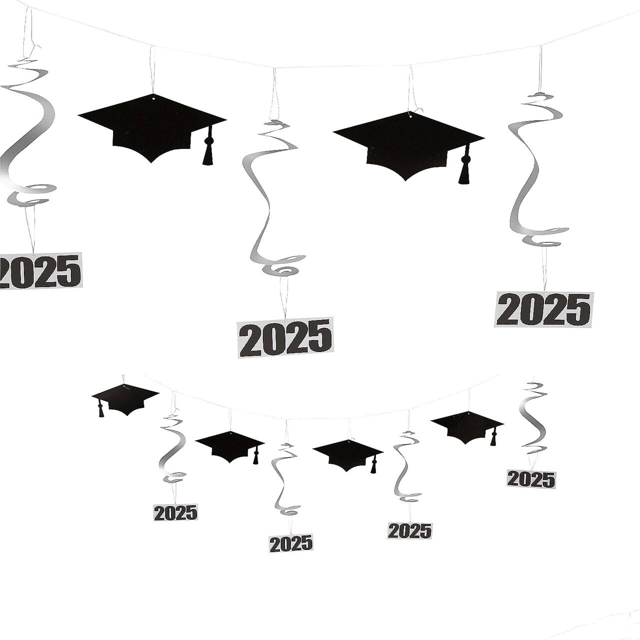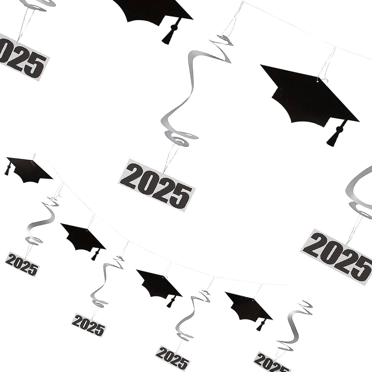 7 Ft. 2025 Graduation Cap & Hanging Swirls Ready-to-Hang Cardstock Garland