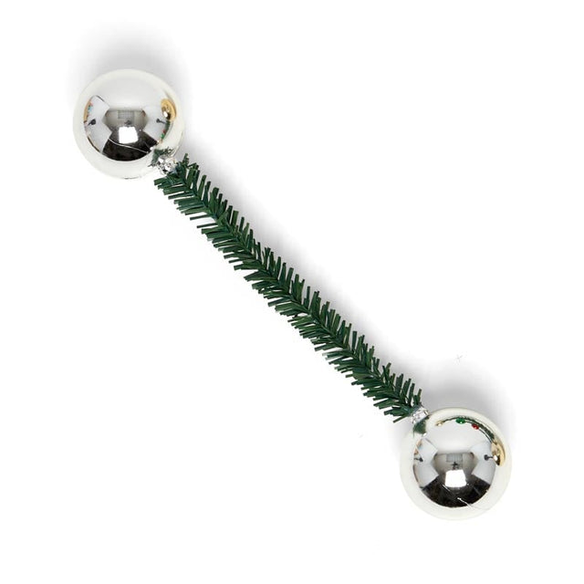 Tinsel Ties with Bulb Ornaments in silver offer a festive and sparkling touch to your holiday decor and crafts. Each 6" tie features a flexible wire body wrapped in shiny plastic, with metallic 2" ball ornaments on both ends, perfect for accenting gifts and displays.