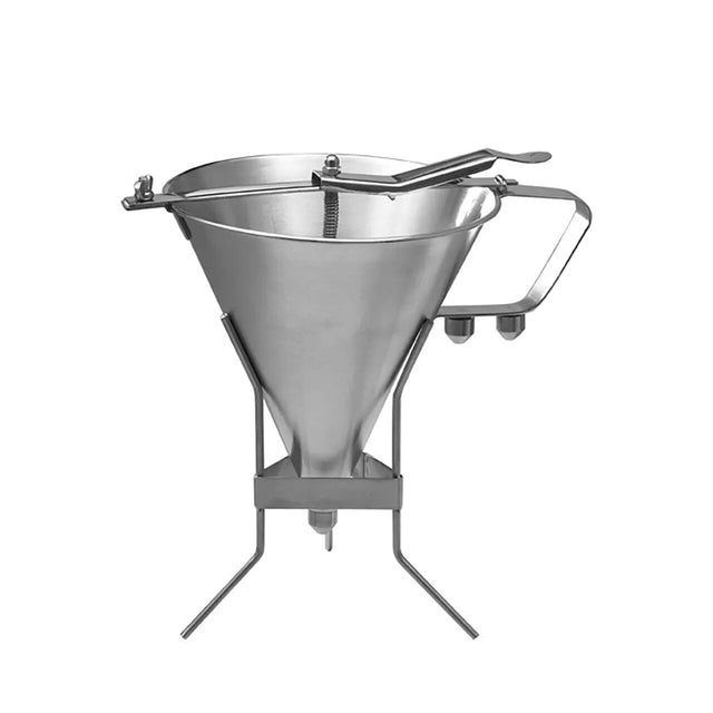Built for confectionery precision, this stainless steel rack stand from Winco keeps your SF-7 funnel upright and accessible during filling or rest. Designed to reduce spillage and movement, it provides stability on prep tables or finishing lines, ensuring smoother operation and more accurate portioning in bakery applications.