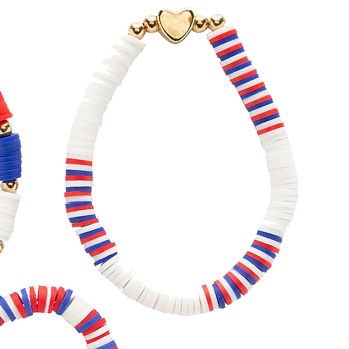 Celebrate the stars and stripes in style with these Patriotic Disc Bead Friendship Bracelets. Featuring red, white, and blue disc beads with fun heart, star, and smiley face charms, they're the perfect festive favor for Fourth of July parties or community events. Lightweight and sized for kids, these bracelets make great candy-alternative giveaways that double as charming keepsakes.