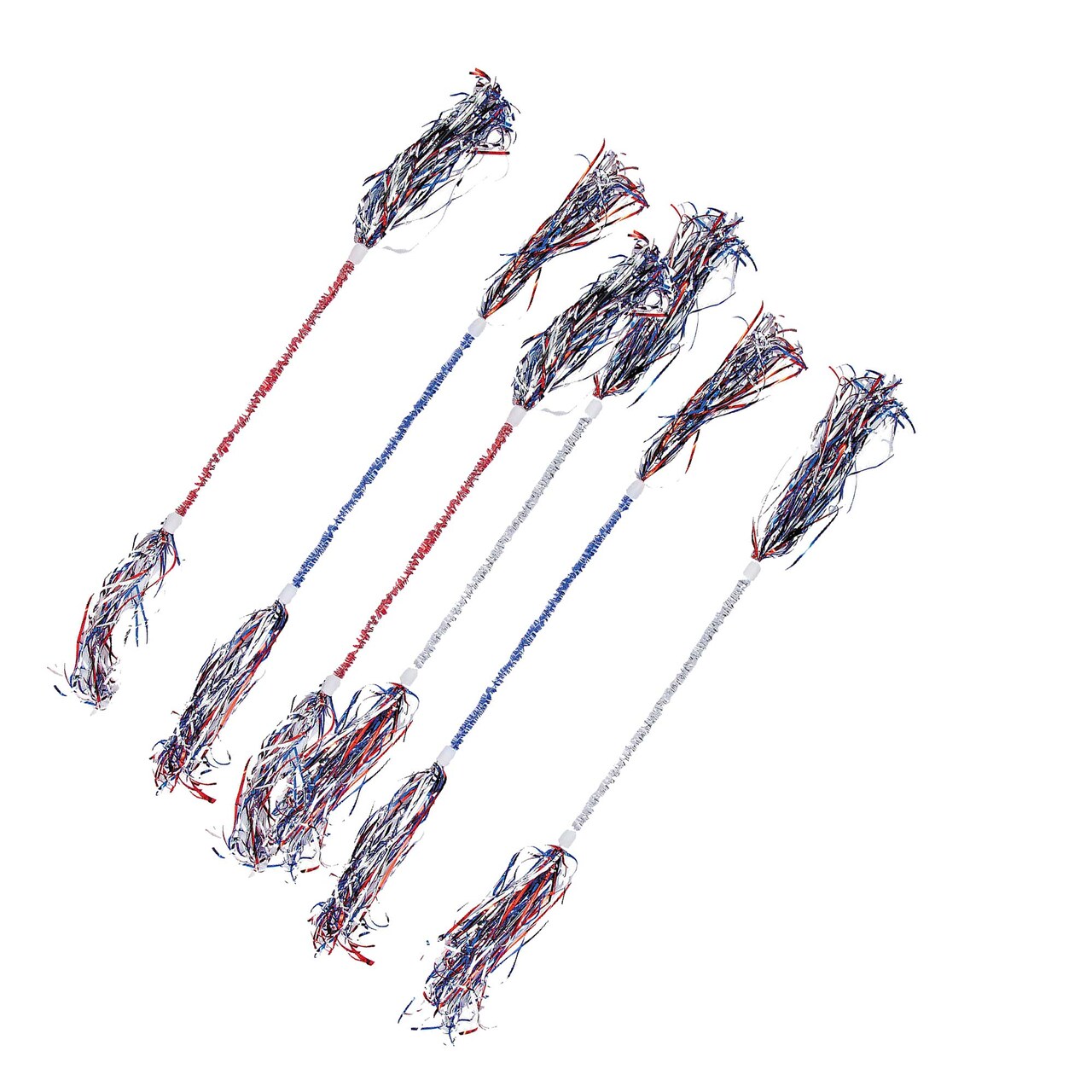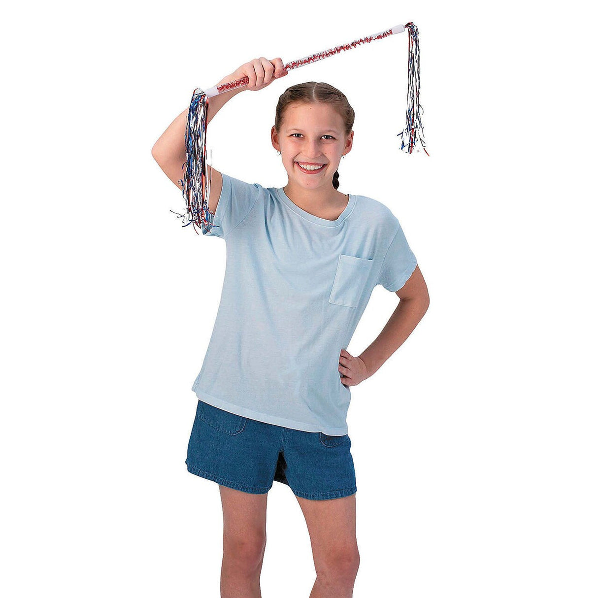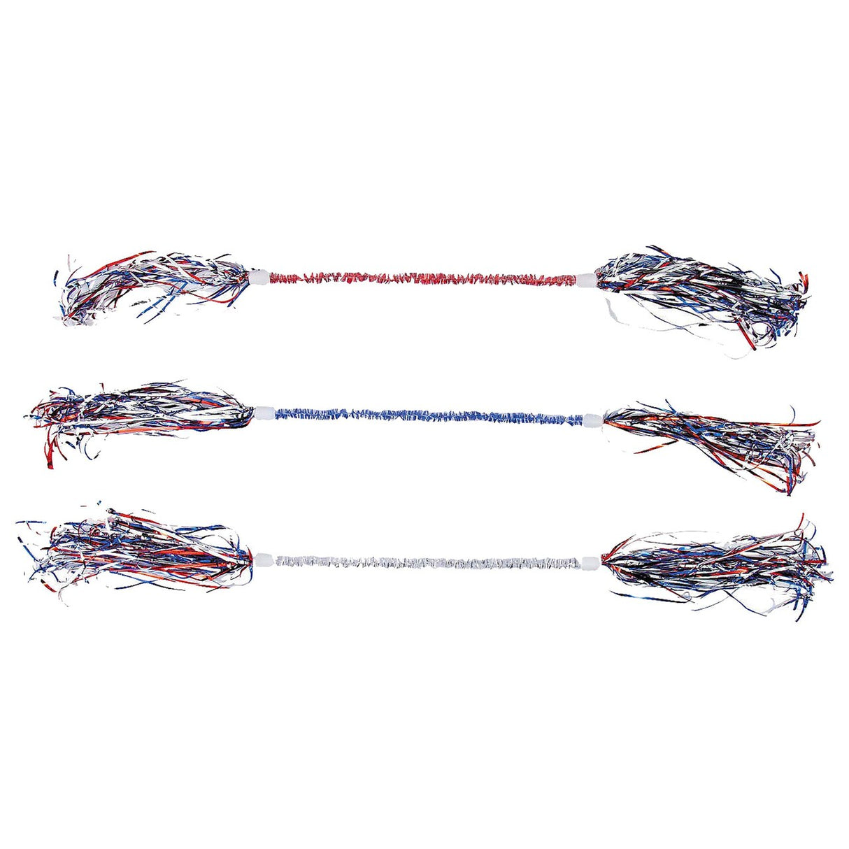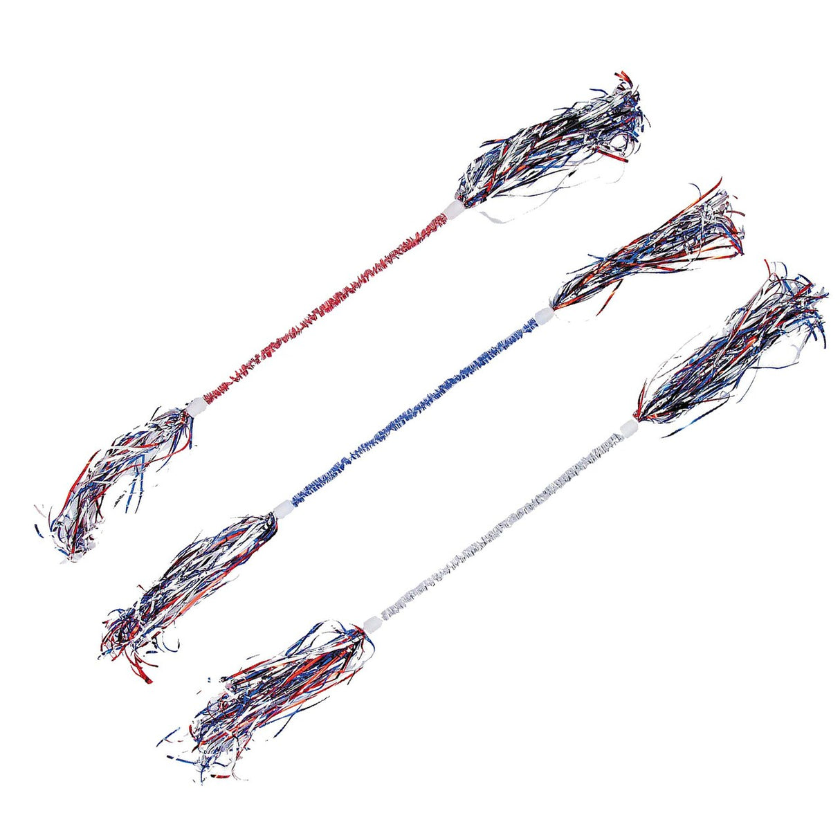 Add sparkle and spirit to your celebration with these Patriotic Red, White & Blue Tinsel Plastic Batons! Featuring vibrant metallic tinsel in red, white, and blue, these lightweight batons are perfect for waving during parades, parties, or cheering at patriotic events. The sturdy plastic handles provide a secure grip, making them great for kids and adults alike. Whether it's the 4th of July, Memorial Day, or any American-themed event, these eye-catching batons bring energy and fun to your celebration.