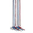 30" Patriotic Red, White & Blue Plastic Bead Necklaces with Guitar 12 Pc.
