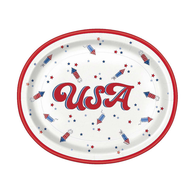 Patriotic USA Oval 12" Plates 8ct is backordered and will ship as soon as it is back in stock.