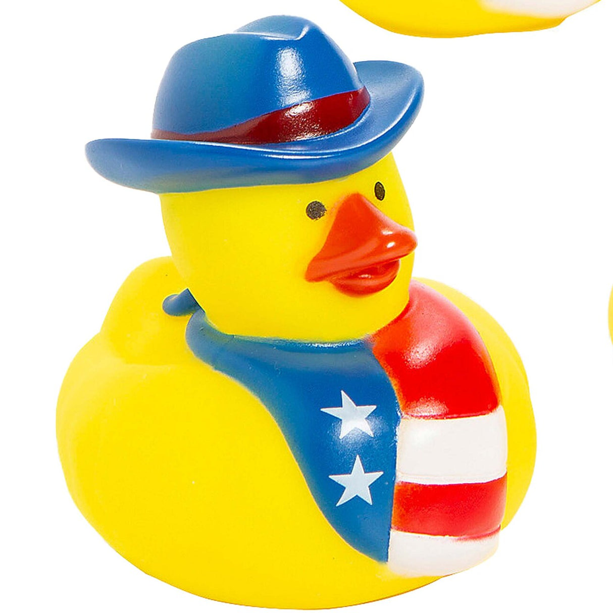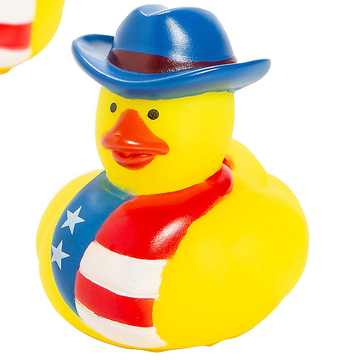 - Vibrant Colors – Features a yellow duck wearing a red and blue cowboy hat with a patriotic scarf.