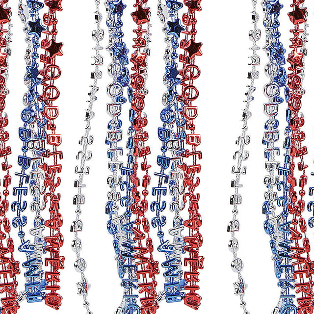 30" Bulk 48 Pieces Patriotic Religious "God Bless America" Beaded Necklaces
