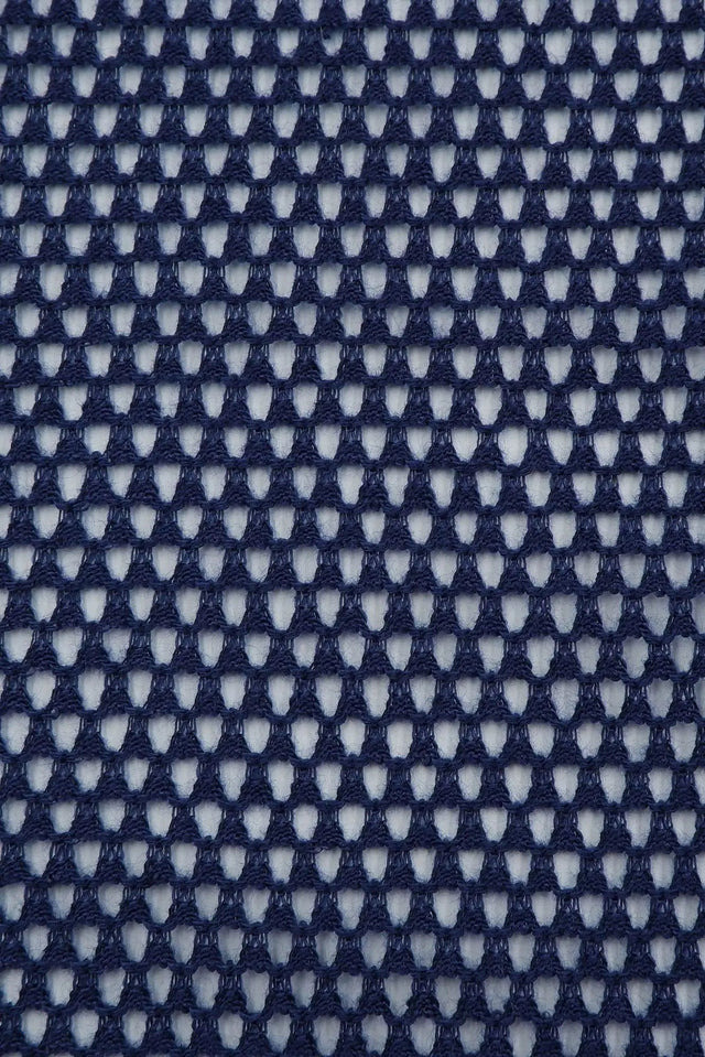 This pointelle mesh solid knit fabric offers a delicate mesh texture combined with pointelle detailing. Made from 95% polyester and 5% spandex, it provides stretch and comfort with a weight of 145 GSM. Perfect for lightweight tops, overlays, and fashion pieces that require breathability and style.