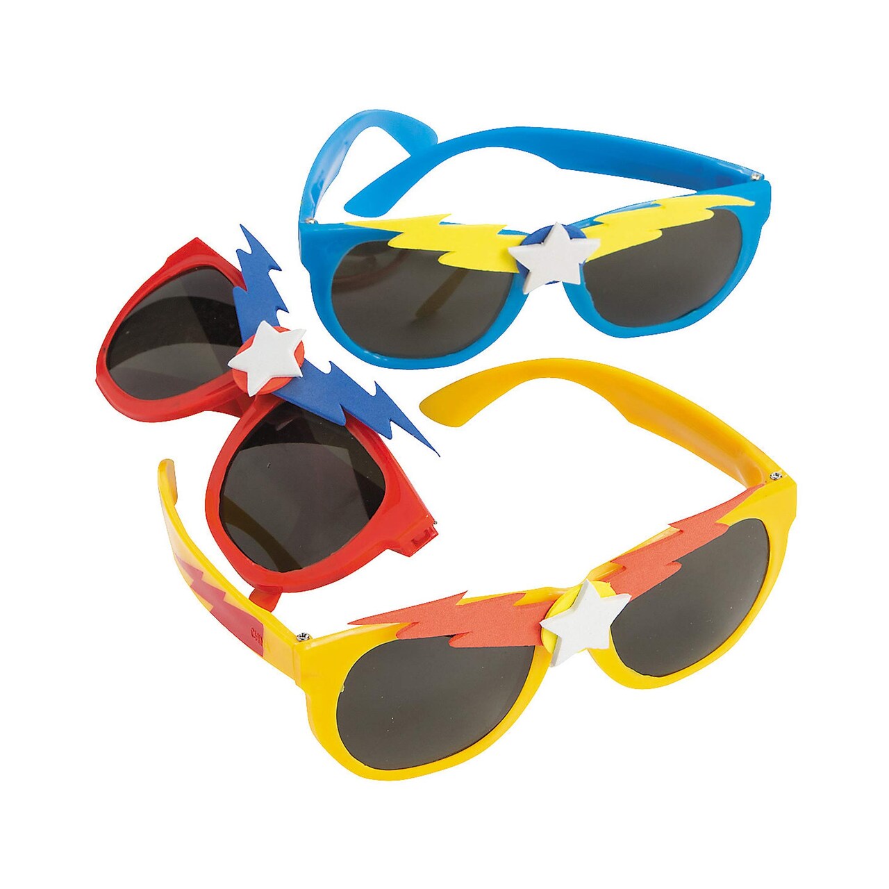 Set of 12 Sunglasses: Includes 12 pairs of superhero-themed sunglasses.