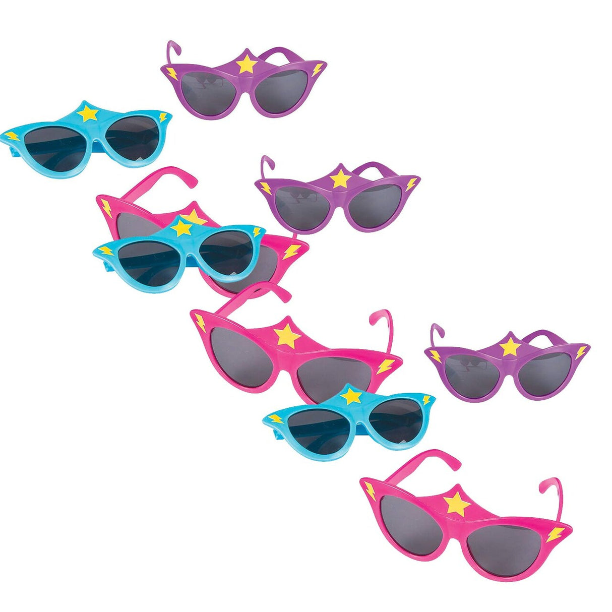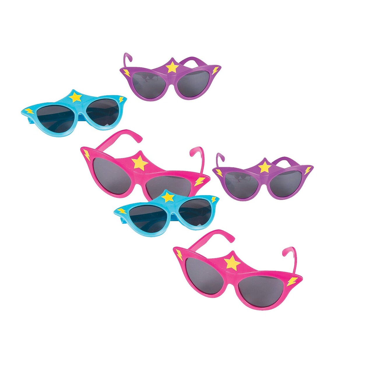 Set of 12 Sunglasses: Includes 12 pairs of superhero-themed sunglasses.