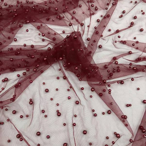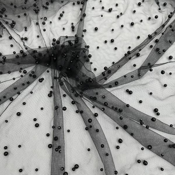 This pearl tulle fabric features delicate scattered pearls on a soft sheer mesh, offering a romantic drape and subtle 2-way stretch. Ideal for bridal veils, wedding gowns, evening dresses, and elegant overlays, it adds sophistication and charm to any project. Lightweight yet durable, the 58 inch width provides ample coverage for couture fashion, DIY creations, and decorative accents. Perfect for sewing, layering, and embellishing with ease.