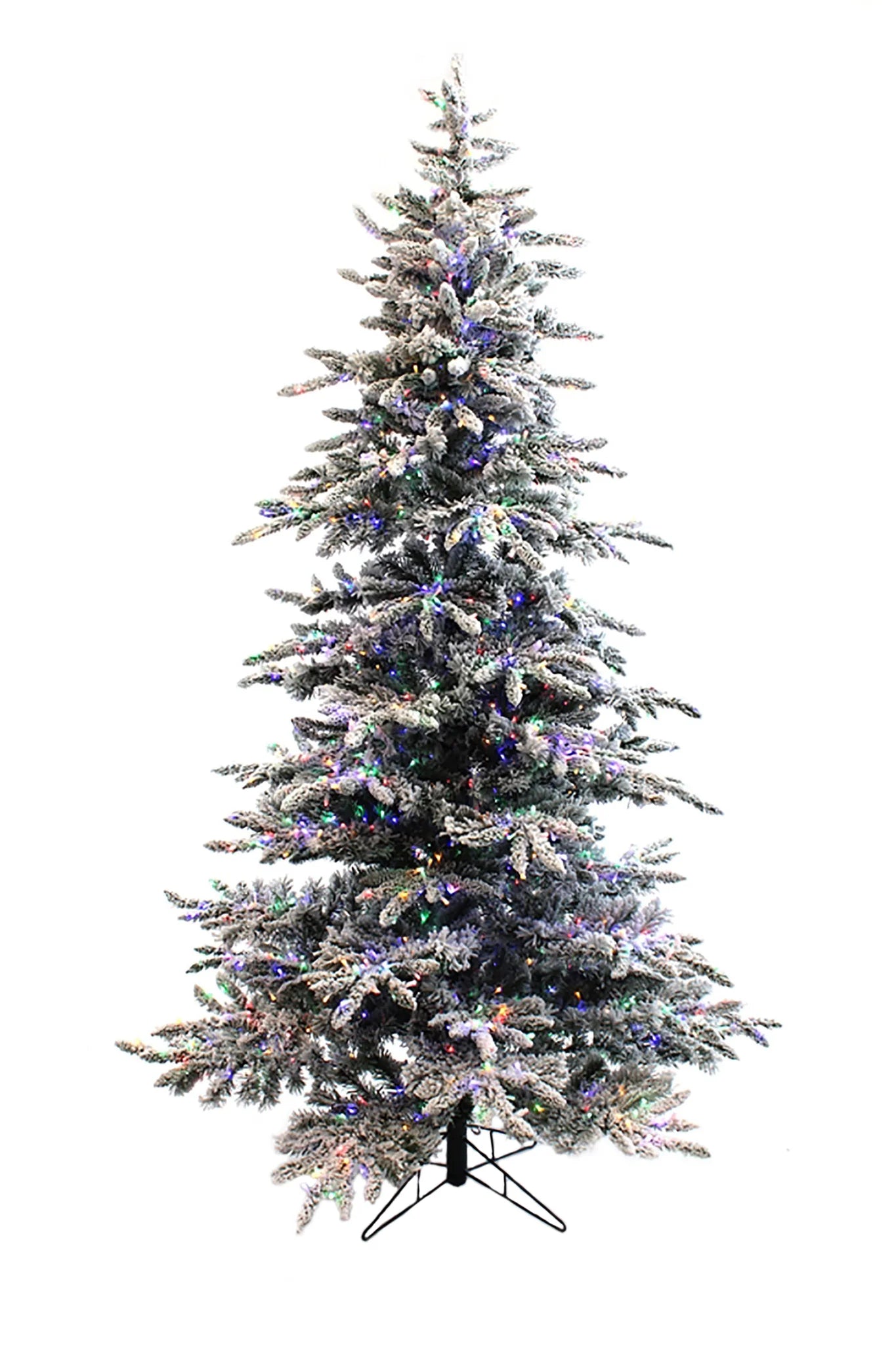 Add versatility and sparkle to your holiday décor with the Prelit Slim Snow Flocked Christmas Tree, featuring both warm white and multicolor lights with 8 lighting functions. Its slim profile is perfect for apartments, corners, or small spaces, while the flocked fir-style branches create a snowy, natural look. With microdot dual LED lights, this tree provides brilliant illumination that’s energy-efficient and cool to the touch. A hinged body design allows for quick assembly and easy storage, while the included sturdy folding stand ensures stability.