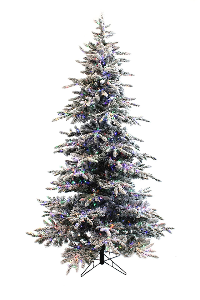 Prelit Slim Snow Flocked Christmas Tree with Warm White & Multicolor Lights