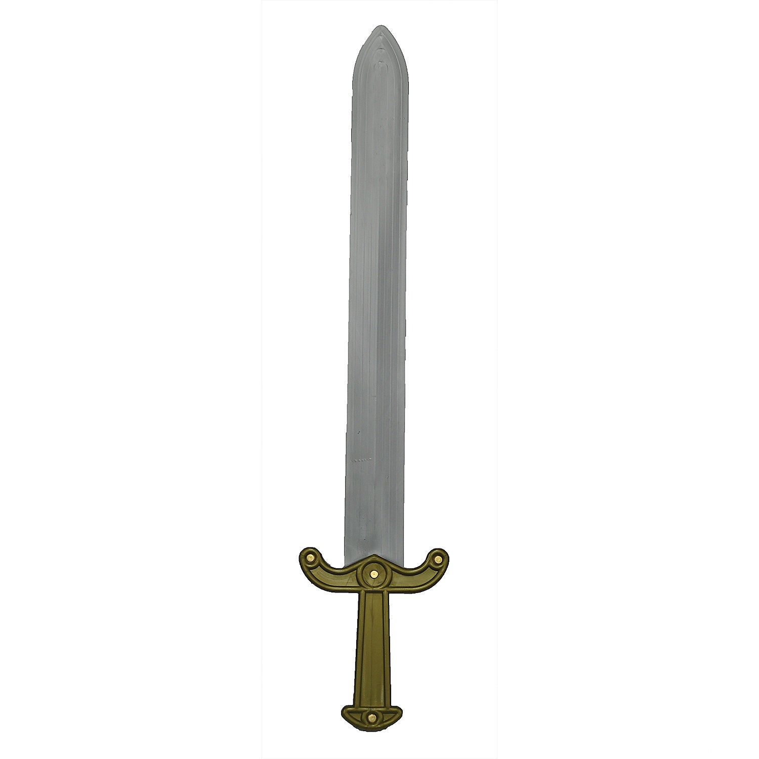 Transform your costume with our sturdy, lightweight Roman Broadsword, the perfect accessory for your Roman Centurion or Greek Warrior outfit. This high-quality plastic sword features a bronze-looking hilt and a silver-colored blade with a soft metallic sheen. Its stout and durable design ensures safety with no sharp edges, making it ideal for various historical and warrior-themed costumes.