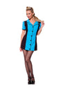 Step up your game with our Women's Bowling Dress Costume, designed for those who want to stand out at any themed event. This vibrant turquoise mini dress with a V front cut and black accent panels delivers style and flair, perfect for a fun night out or a costume party.