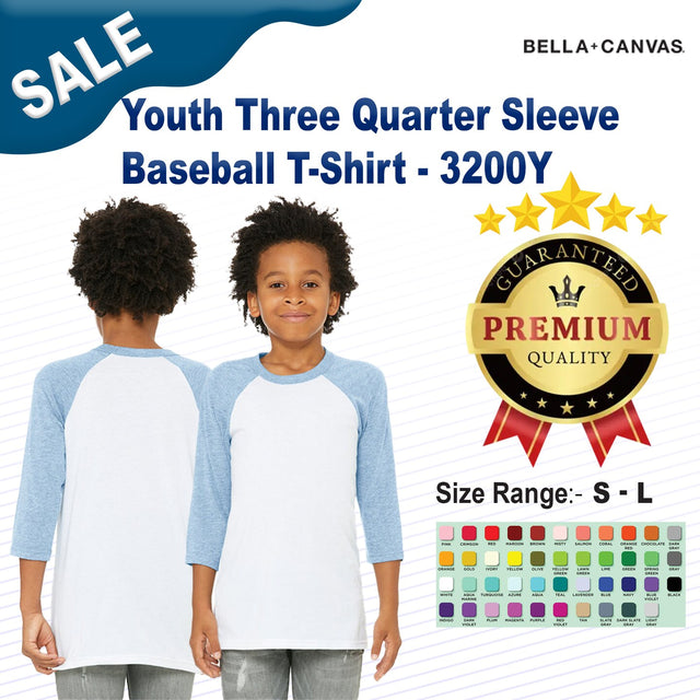 Bella + Canvas® Youth Three-Quarter Sleeve Baseball T-Shirt - 3200Y