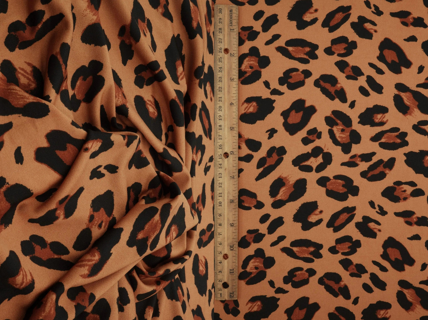 DTY Animal Leopard Print Knit Fabric 58/60" Wide – 190 GSM - Caramel / 1 YARD is backordered and will ship as soon as it is back in stock.