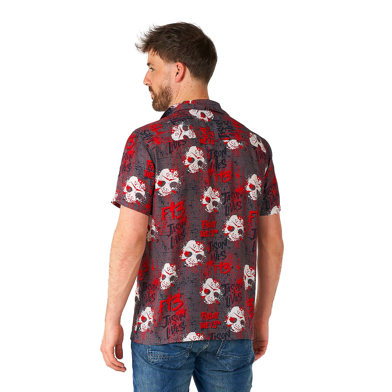 Campfires, cabins, and an unstoppable killer on the loose – that’s Friday the 13th for you! Our Men's Friday the 13th Short-Sleeved Shirt captures the essence of this classic slasher franchise, featuring Jason Voorhees’ iconic hockey mask. Made of 100% Rayon, this shirt is perfect for Halloween parties, movie nights, or casual outings.