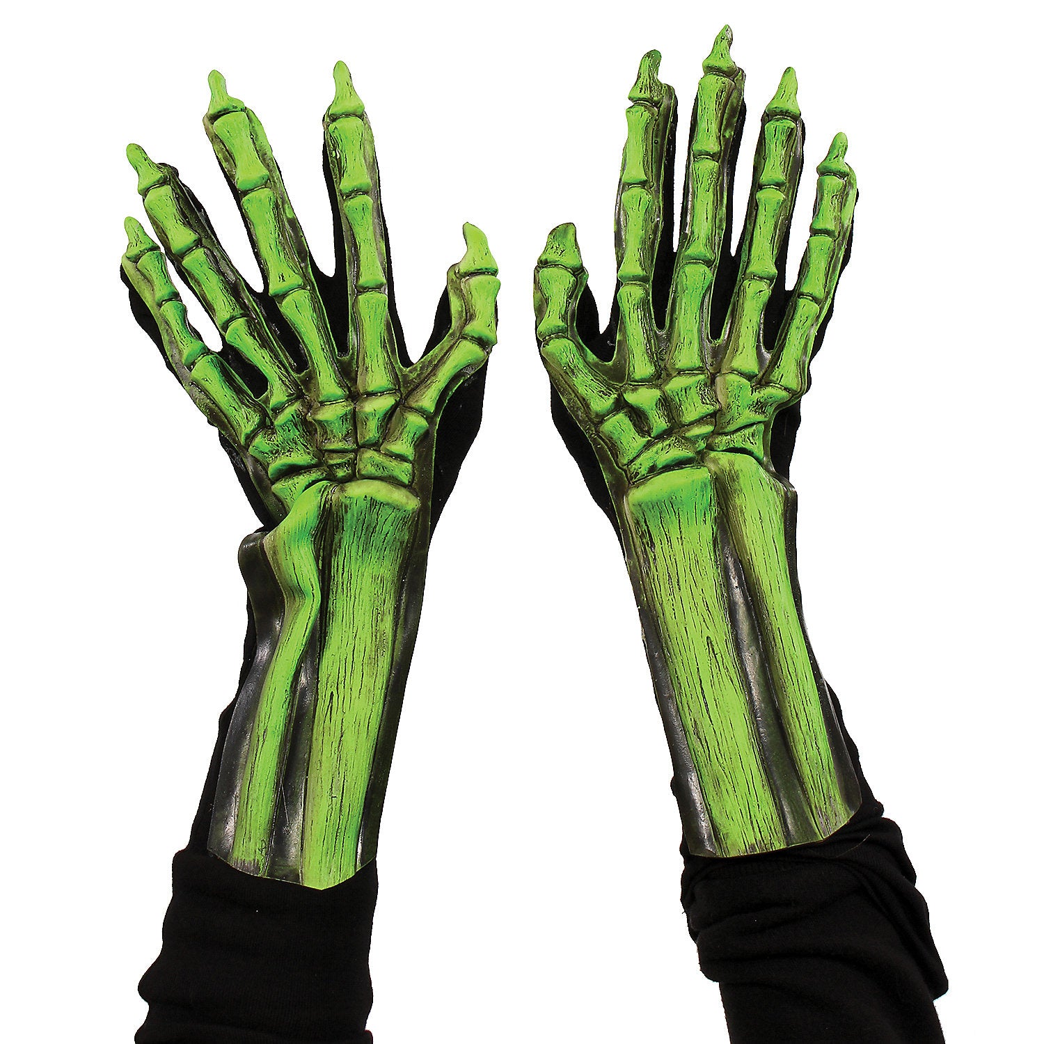 UV Green Glow Reactive Skeleton Hands for Halloween Party Costume and Haunted House Decor
