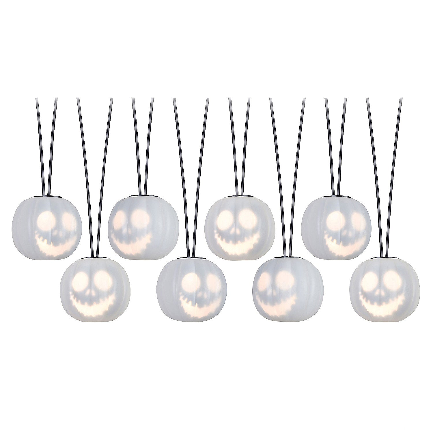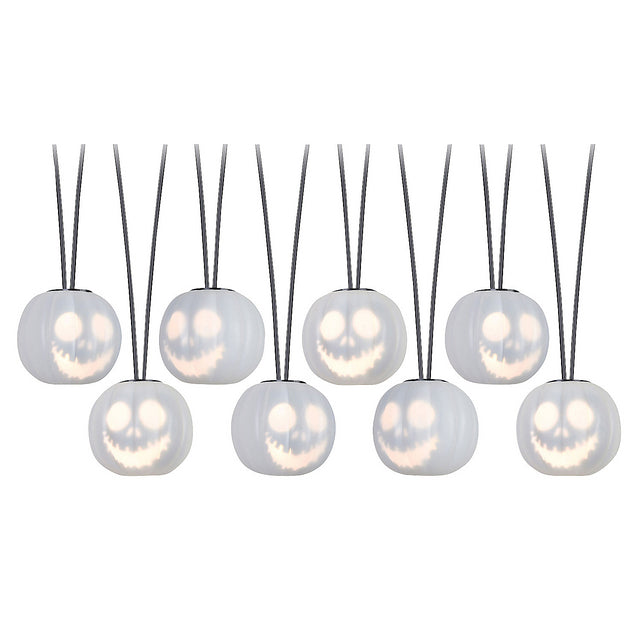 From Disney's popular Nightmare Before Christmas animated movie comes our fun Jack Skellington Musical Light String! Little white Jack o' Lanterns with projected faces eerily sing Jack's Lament, the Pumpkin King's song from the movie! Our battery-operated Emoteglow 8-light string is approximately 98 inches long, with the Jack Skellington heads measuring 3 inches tall and 2.7 inches wide. Add several strings to create a cool effect!